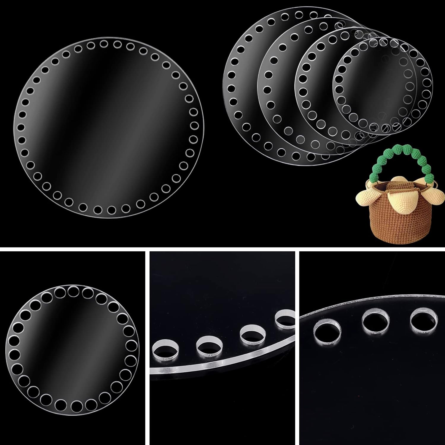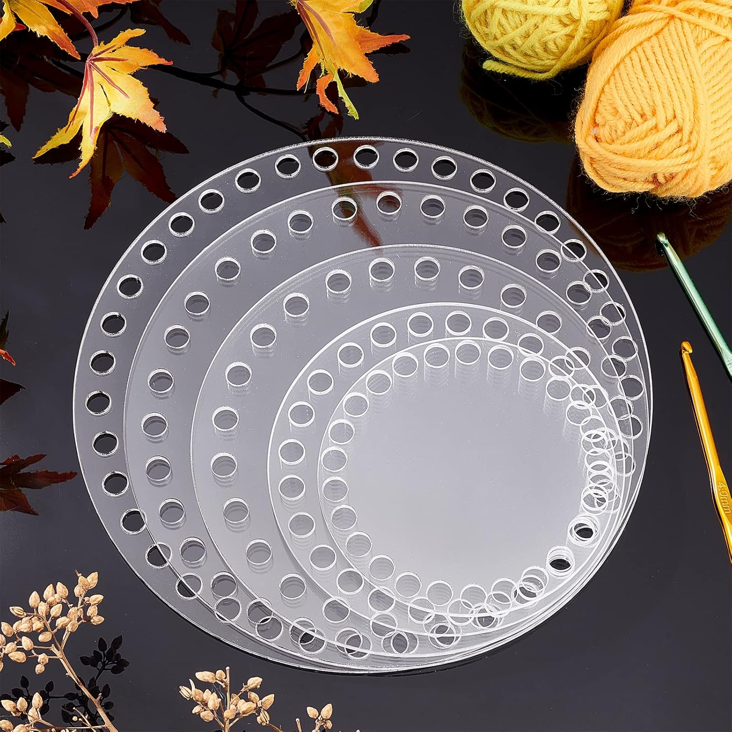 PandaHall 5 Size Acrylic Weaving Boards, Flat Round Crochet Basket Bases Transparent Basket Bases Crochet Bag Bottoms for DIY Baskets Bags Knitting Crochet Supplies
