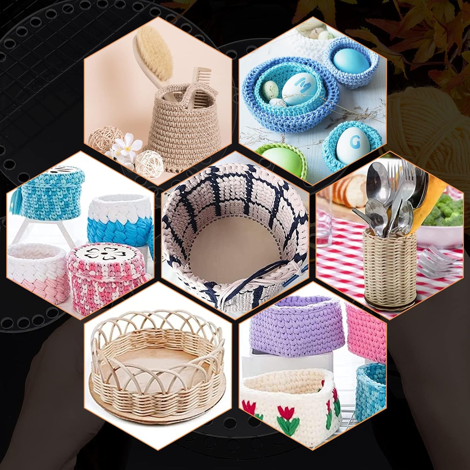 Easy to Use: combining with thick T-shirt yarn, woolen yarn, rattan or cotton thread, your crochet baskets will be easily finished. You can weave many patterns according to your ideas, and you can also change the rope and reuse these bases.