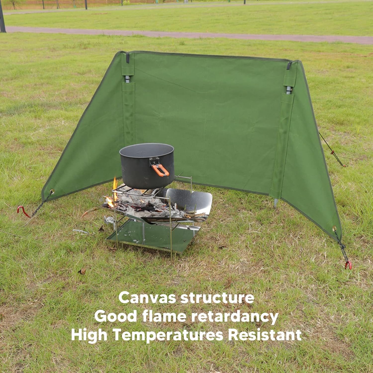 Specification: Item Type: Canvas Camping Grill Windshield Material: Silicone Cotton Canvas, 6061 Aluminum Alloy and 7075 Aviation Aluminum
